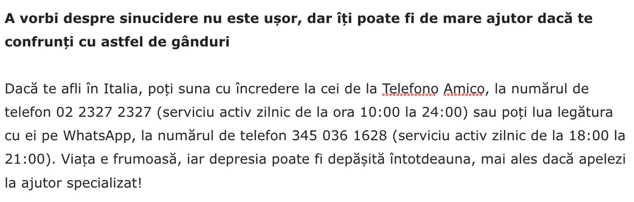 O adolescentă moldoveancă în vârstă de 16 ani a fost salvată în mod dramatic de carabinieri și de alte forțe de intervenție după ce s-a aruncat în râul Sangone, de pe podul Europa din localitatea italiană Nichelino, provincia Torino din Piemont.