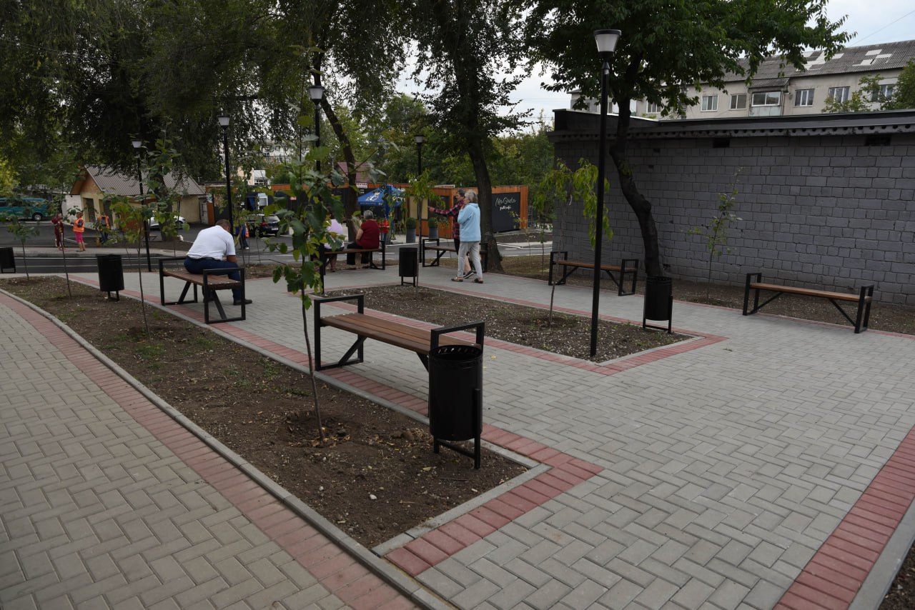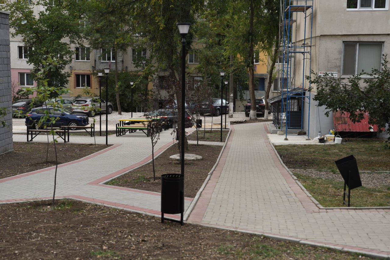 Pe o suprafață de peste 200 metri pătrați a fost instalat pavajul. De asemenea, au fost montate 16 felinare și mobilier – 20 de scaune, 3 mese și 12 coșuri pentru deșeuri. Curtea a devenit mai confortabilă și mai luminoasă, tuturor le place să se odihnească în scuar.