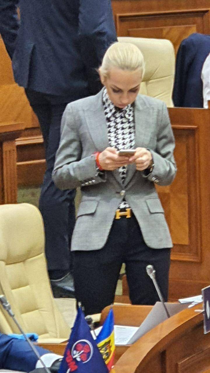 Deputatul Partidului „ȘOR”, Marina Tauber, a venit astăzi la ședința Parlamentului, purtând o centură de mii de dolari.