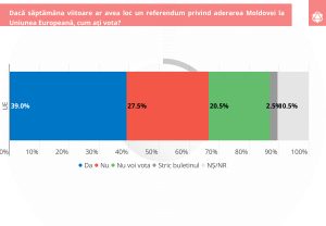 Rezultatele recente ale unui sondaj realizat de compania Intellect Group arată că majoritatea respondenților (39,0%) susțin aderarea Republicii Moldova la Uniunea Europeană. Acest lucru reflectă aspirațiile populației de a se integra în structurile economice și politice ale Europei.
