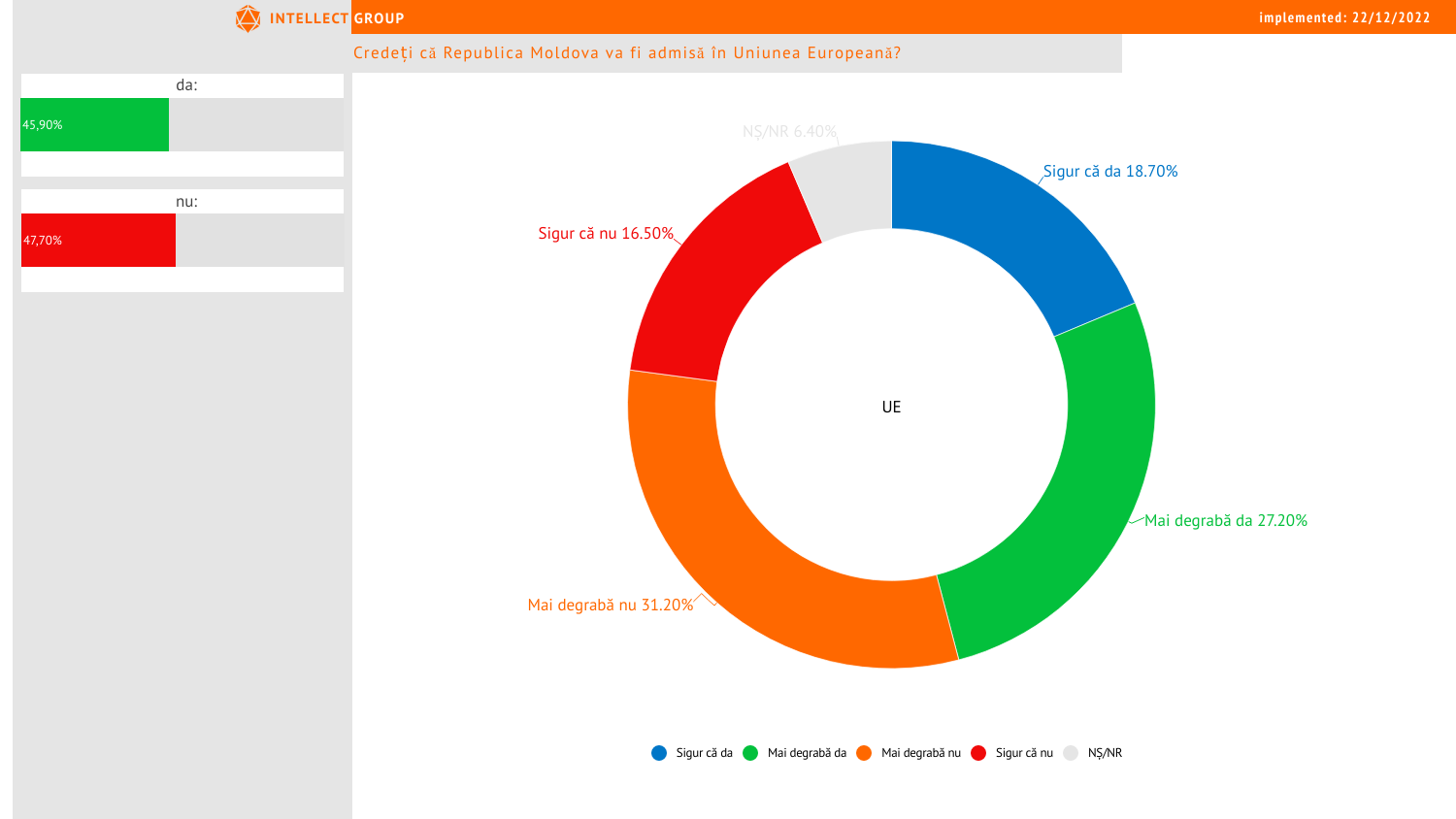 Sondajul republican cu privire la viața social-politică din Republica Moldova a fost realizat în perioada 01 – 20 decembrie 2022. Numărul total de respondenți este de 1209 de persoane cu drept de vot. Marja de eroare reprezintă +-2,9%.