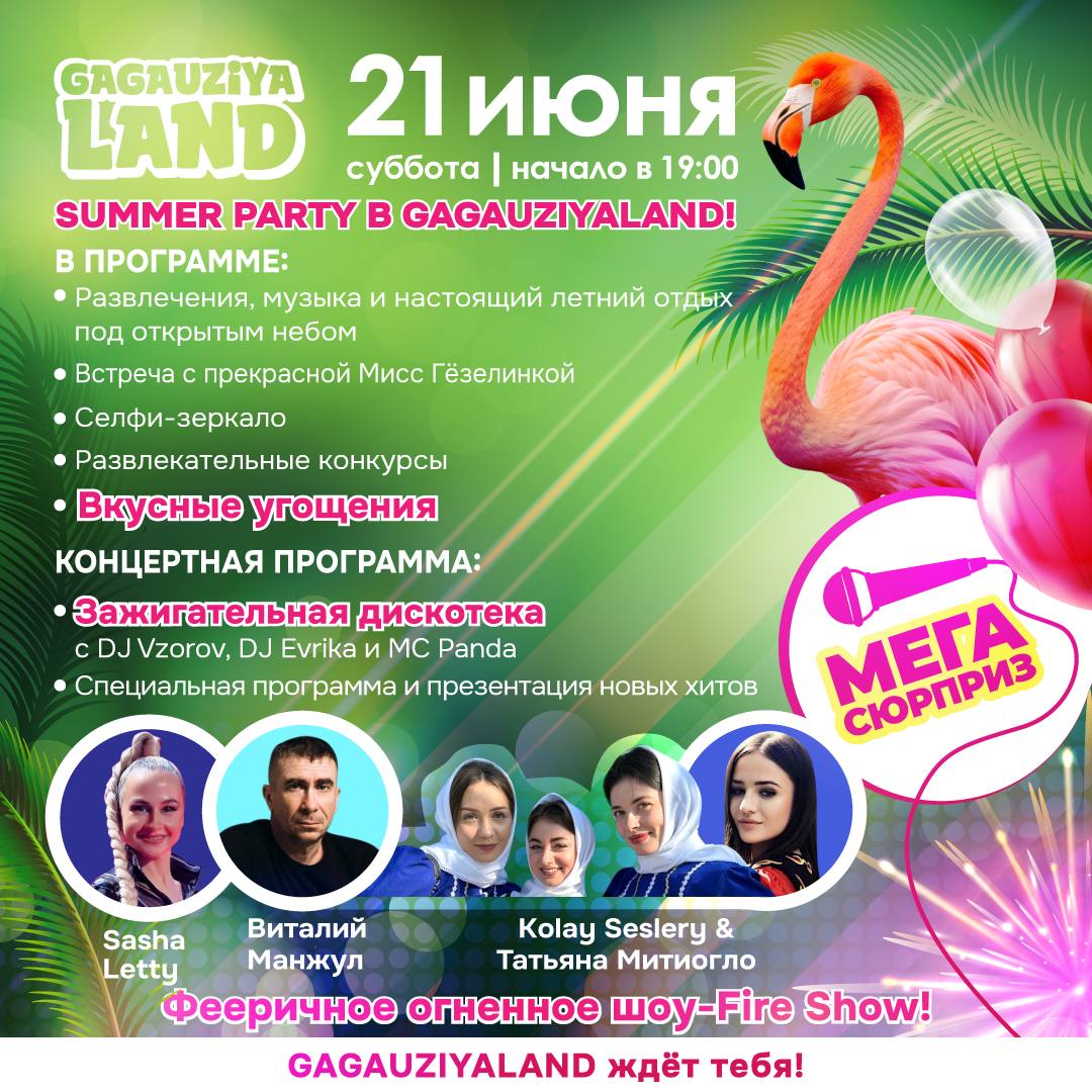 Toți iubitorii de voie bună sunt invitați la Summer Party în GagauziaLand, care va avea loc sâmbătă, 21 iunie, începând cu ora 19:00. Evenimentul promite o seară plină de muzică, distracție și surprize pentru întreaga familie.