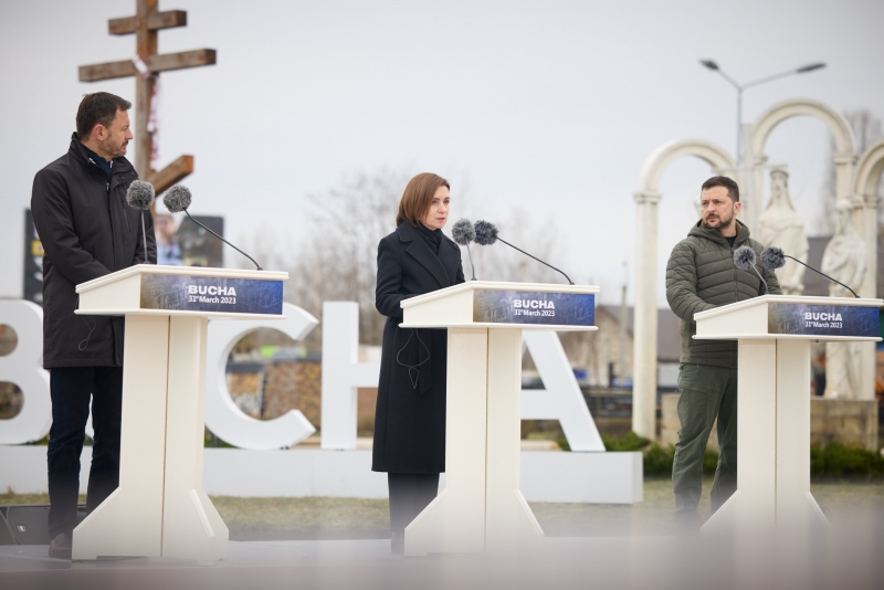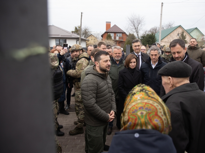 Președinta Republicii Moldova, Maia Sandu, împreună cu omologul său de la Kiev, dar și alți șefi de state și de guverne, au fost astăzi la Bucea să comemoreze victimele masacrului de acum un an. „Am revenit în acest loc pentru a onora victimele nevinovate – bărbați, femei, părinți și copii – sute de oameni uciși, mulți alții violați și torturați cu o cruzime de neimaginat. Nimeni nu credea că ororile despre care am citit în manualele de istorie pot avea loc și acum, pe continentul nostru, chiar în țara vecină. Aceste crime împotriva umanității trebuie oprite și pedepsite!”, a spus șefa statului.