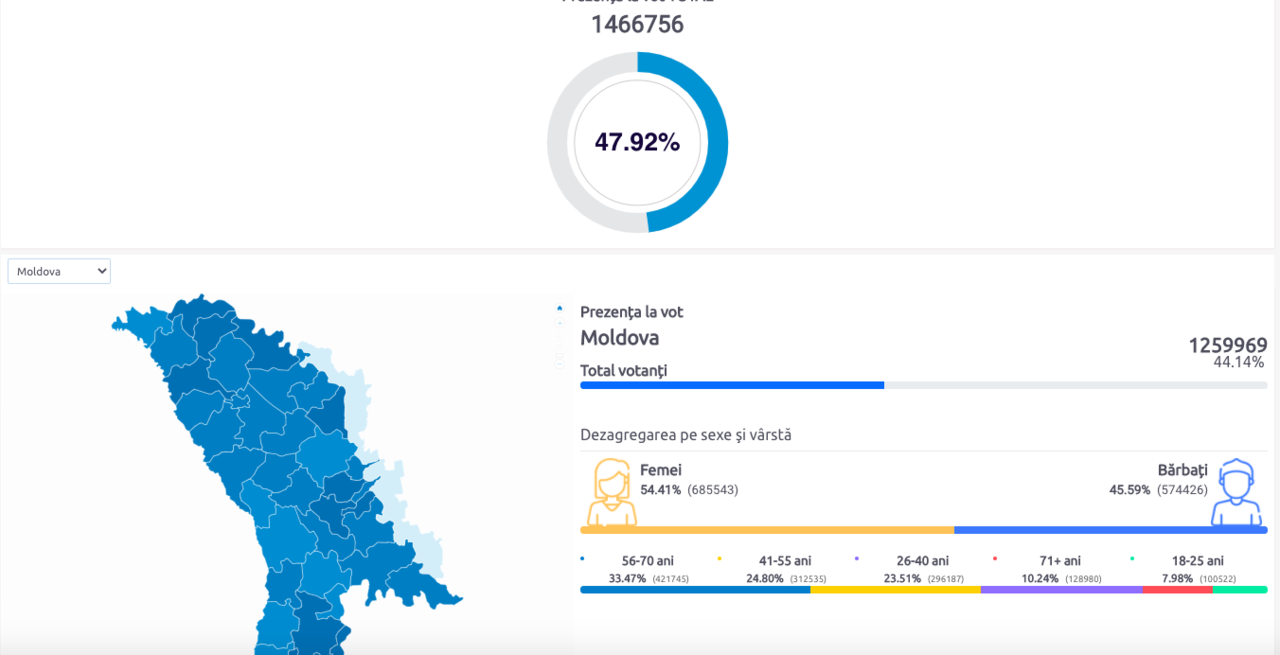 Menționăm că pe 1 noiembrie, până la ora 17:00, au reușit să voteze 36,19% din alegători, echivalentul a puțin peste 1.023.914 de cetățeni.