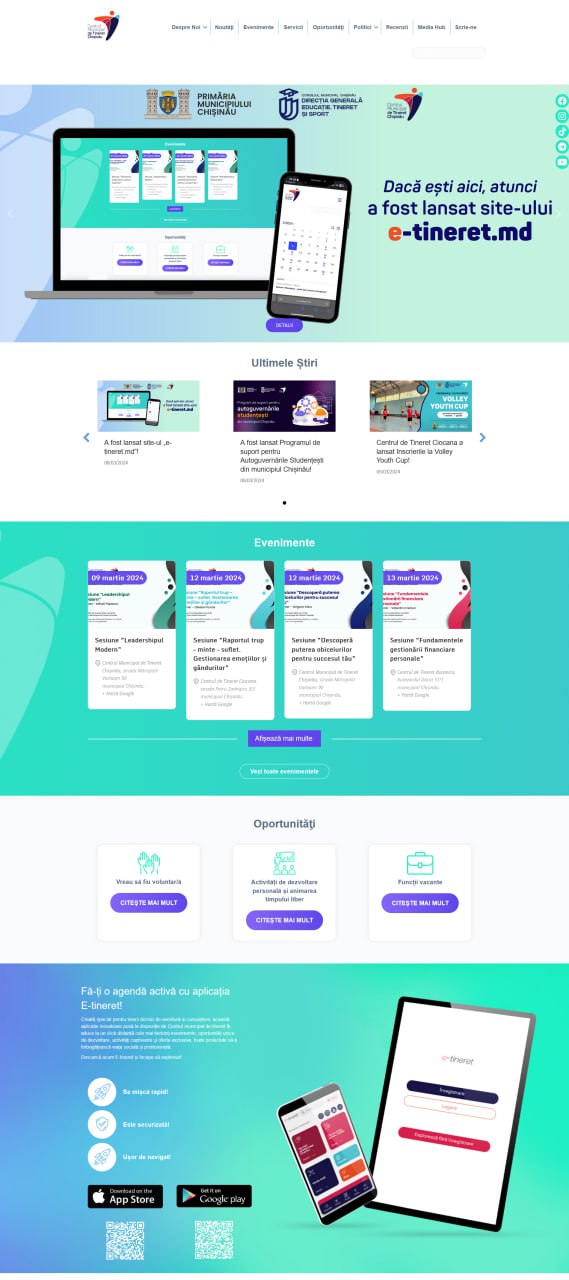 Primăria Capitalei a lansat azi site-ul e-tineret.md. Datorită noii pagini, tinerii au posibilitatea să se informeze sigur și din prima sursă despre ce oportunități pot avea la centrele de tineret din Chișinău și nu doar.