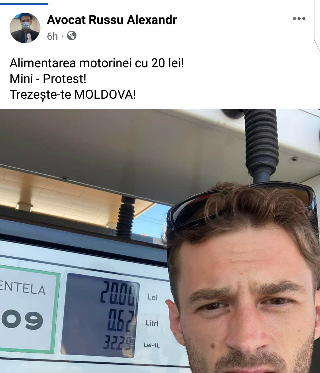 Un avocat din Capitală, Alexandr Russu, și-a alimentat mașina de doar 20 de lei, în semn de protest față de scumpirea carburanților.