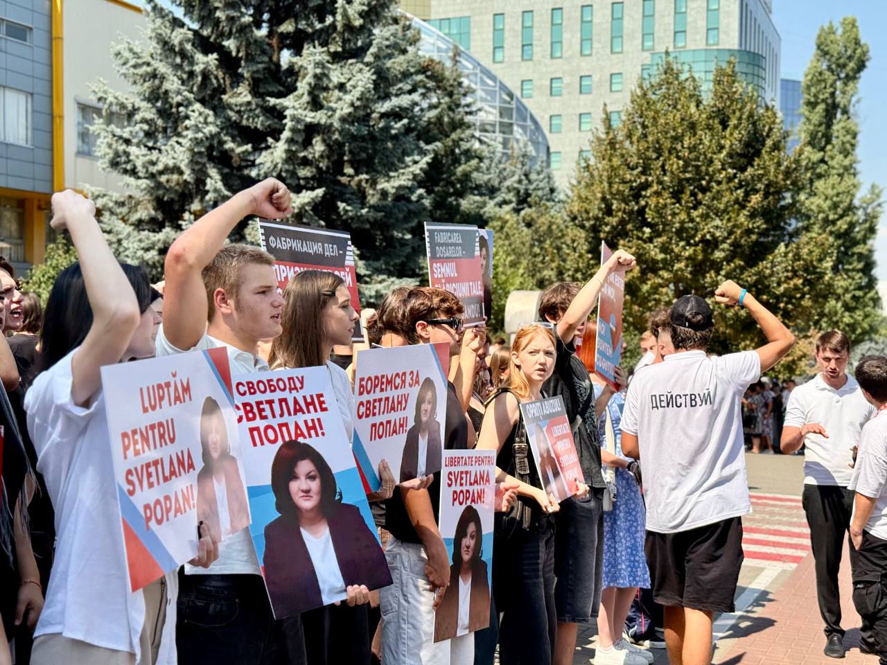 Mii de cetățeni au venit la sediul judecătoriei pentru a le susține pe Guțul și Popan. La fel ca în ziua precedentă, în timpul ședinței de judecată în cazul Marinei Tauber, autoritățile nu au permis desfășurarea acțiunii în fața instanței. Cu toate acestea, protestul de amploare a avut loc — oamenii s-au adunat pe cealaltă parte a străzii. Clădirea a fost complet încercuită de poliție și carabinieri, iar accesul a fost blocat chiar și pentru aleșii poporului și rudele inculpatelor. Potrivit președintelui grupului parlamentar „Victorie”, Vasile Bolea, ceea ce s-a întâmplat demonstrează că „puterea se teme de propriul popor și folosește aparatul represiv pentru a ascunde deciziile ilegale”.