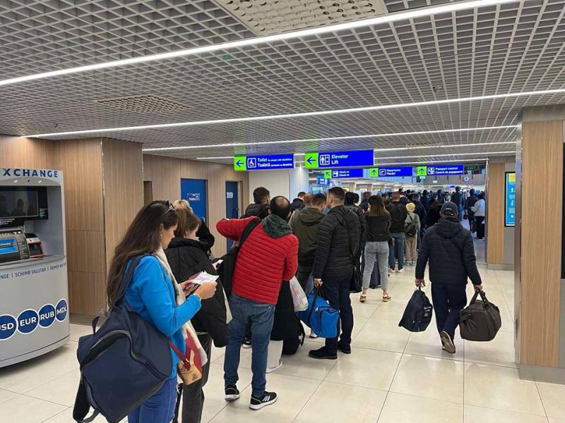 Aglomerație și haos la intrarea în aeroportul din Chișinău. Mai mulți pasageri s-au plâns de rândurile uriașe, care încep de afară. Oamenii sunt nevoiți să aștepte zeci de minute, în frig.
