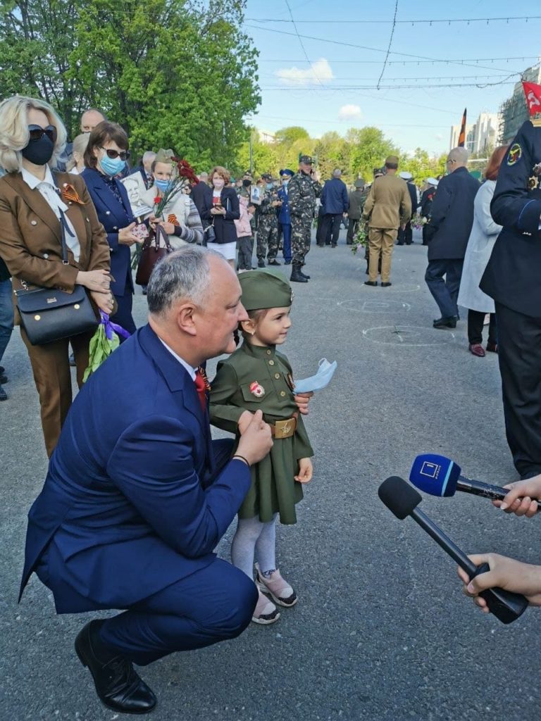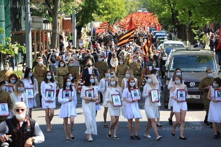 Mii de oameni participă în aceste clipe la Marșul Victoriei din centrul Capitalei, organizat cu ocazia zilei de 9 mai. Evenimentul a început cu o paradă a mașinilor retro. În centrul coloanei, care se deplasează din Piața Marii Adunări Naționale spre Complexul memorial “Eternitate” merg socialiștii în frunte cu Igor Dodon. Oamenii scandează “Victorie!”, „Moldova!”.