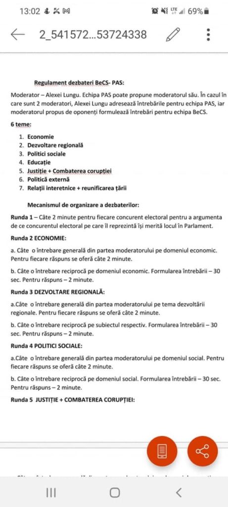 Blocul Comuniștilor și Socialiștilor a publicat Regulamentul pentru dezbaterea electorală cu PAS. Documentul a fost prezentat de către Vlad Batrîncea pe rețelele de socializare.