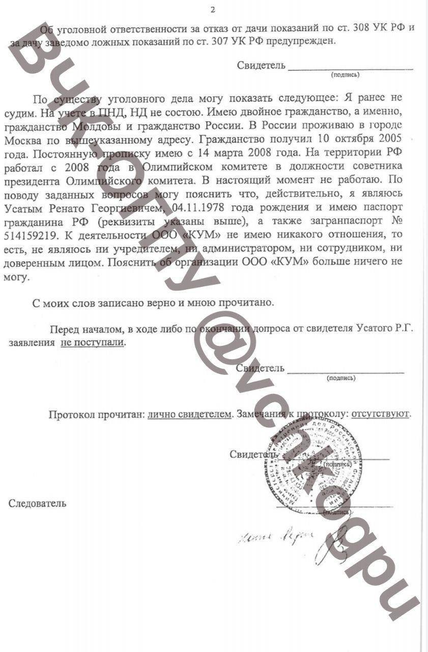 „Potrivit Ministerului de Interne din Rusia, Renato Usatîi a fost membru al grupării criminale care a organizat Laundromat-ul rusesc și a spălat milioane de ruble ale echipei КУМ – o abreviere de la Andrei Krapivin (care ulterior a fost schimbat de fiul său, Alexei), Boris Ușerovici și Valerii Markelov. Aceștia sunt cofondatorii unei companii ГК 1520 din Federația Rusă, care primea sume enorme de la Căile Ferate ale Federației Ruse. Aceștia bani erau spălați. În 2012, Usatîi a fost interogat pe marginea dosarului în care figurau membrii  КУМ. Atunci Usatîi a recunoscut că deține dubla cetățenie (a Republicii Moldova și a Federației Ruse) și că are viză de reședință permanentă în orașul Moscova. Atunci, în 2012, organele de drept și membrii КУМ erau strâns legați între ei, respectiv dosarul a fost închis”, se menționează în postarea canalului de Telegram ВЧК-ОГПУ.