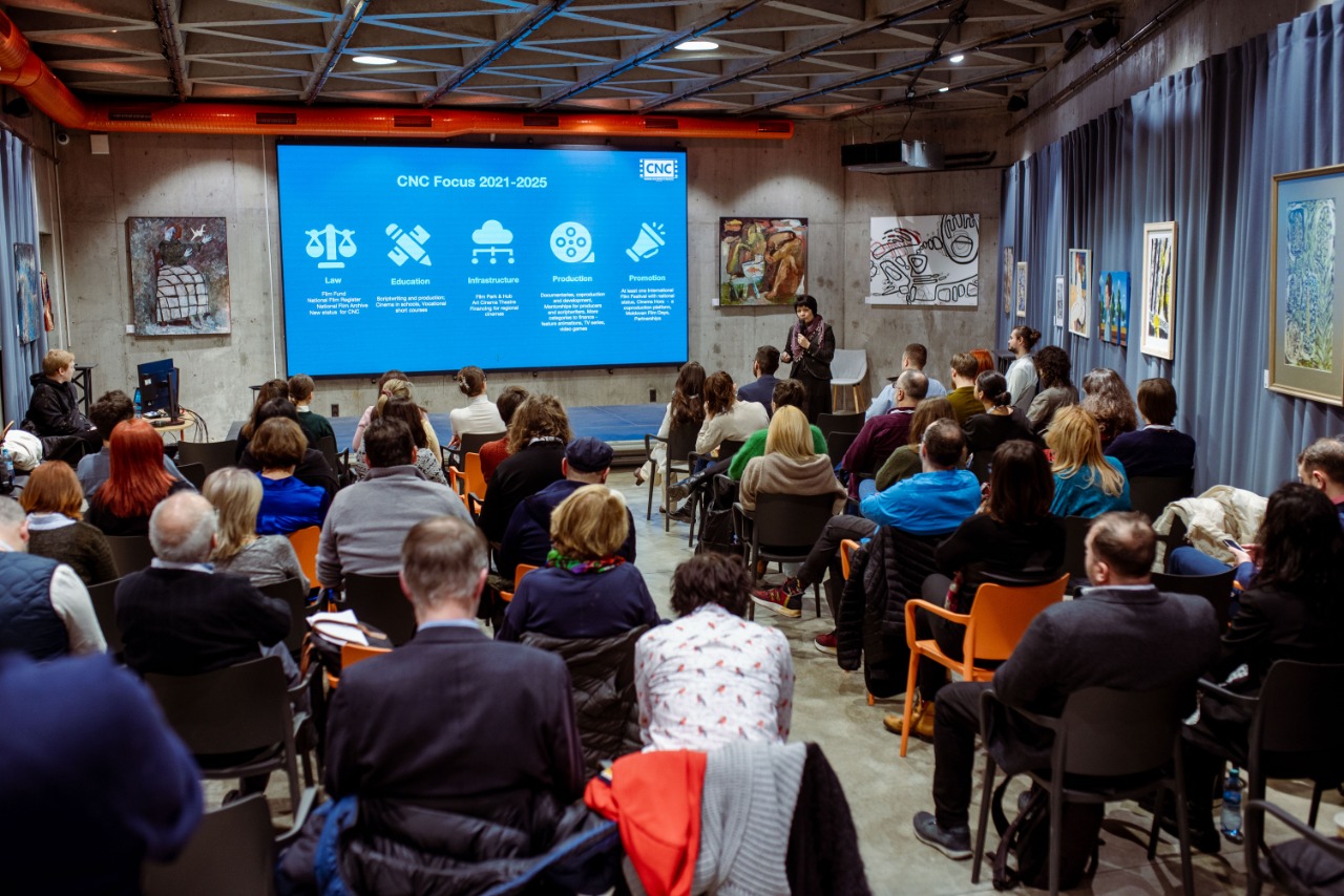 În prima zi de eveniment, în sala Europa de la Parlamentul Republicii Moldova au avut loc mai multe sesiuni de discuții, în cadrul cărora cineaștii din afara țării au vorbit despre ecosistemul cinematografic internațional, colaborări de succes în industria de film, provocări și oportunități.