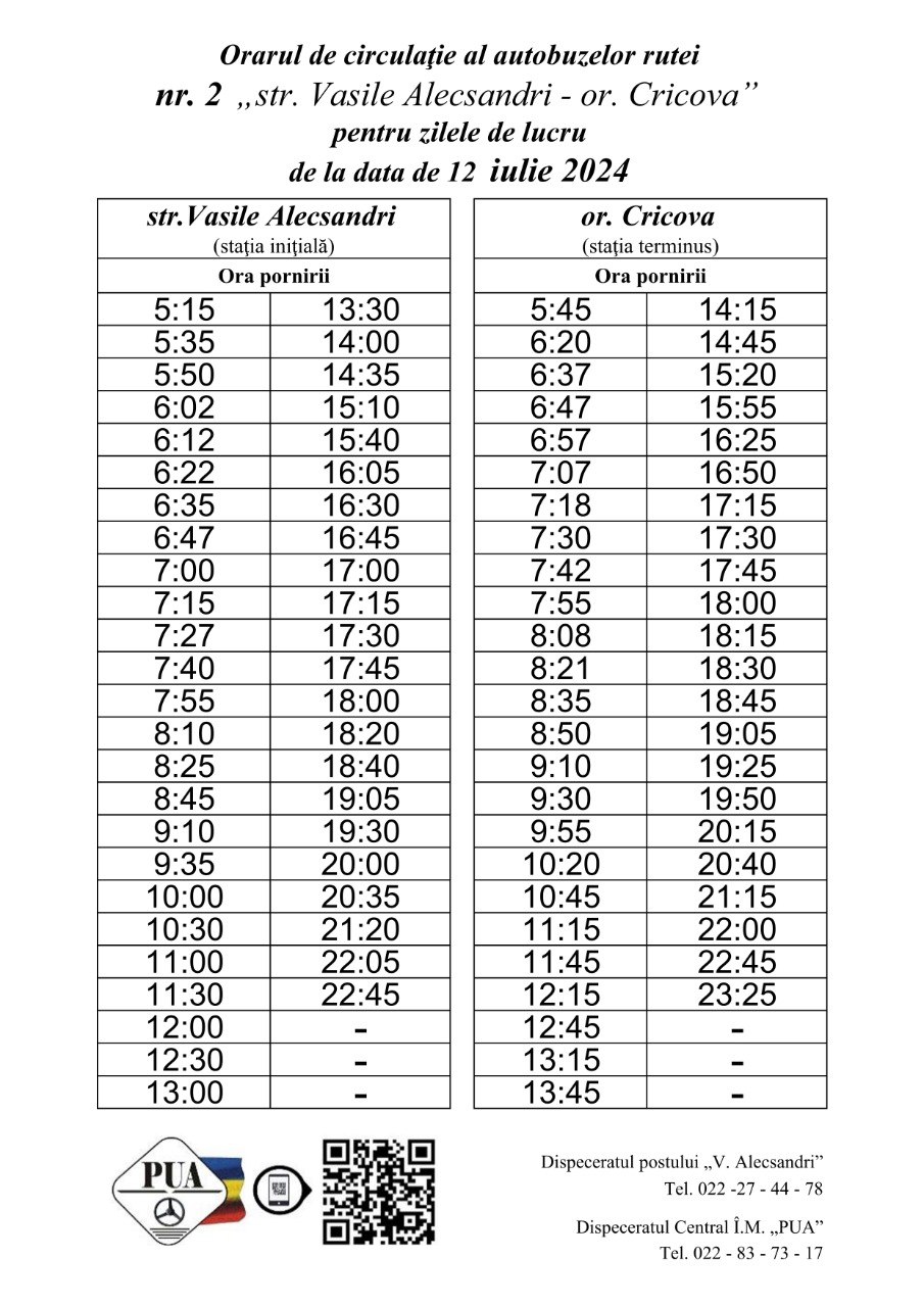 -Nr. 2 „str. Vasile Alecsandri – or. Cricova”;