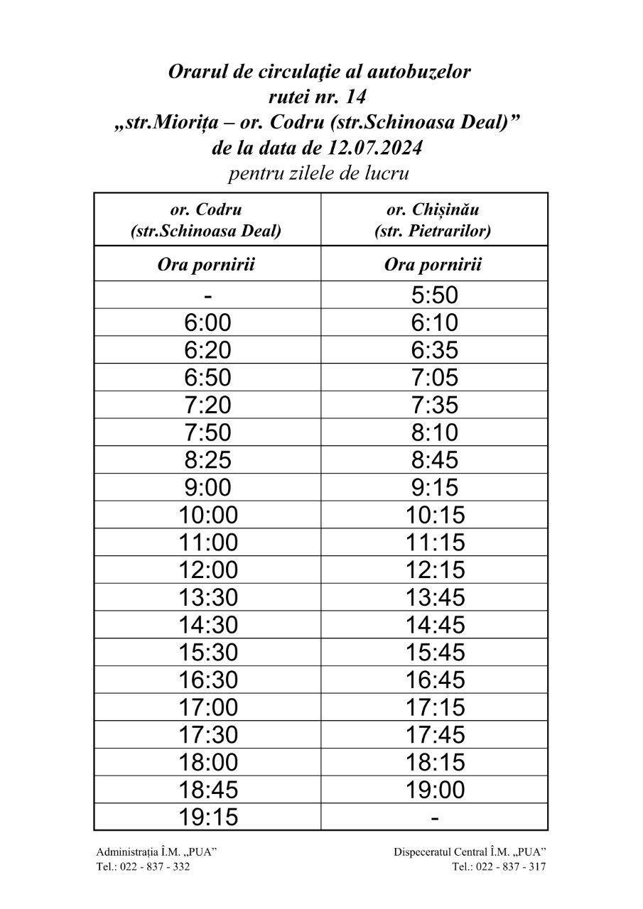 -Nr. 14 „or. Codru, str. Schinoasa Deal – or. Chișinău, str. Miorița”;