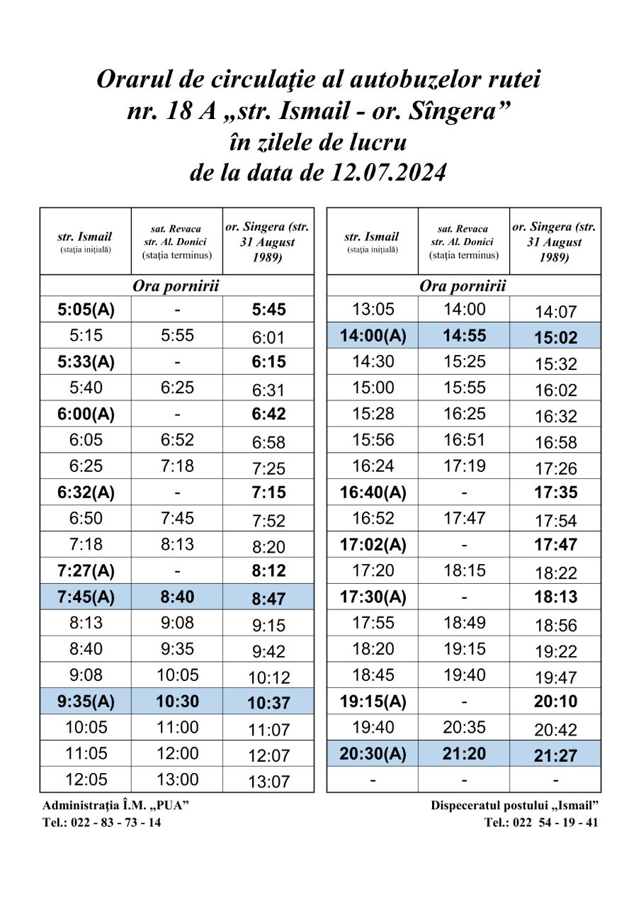 -Nr. 18 A „str. Ismail – or. Sîngera”;