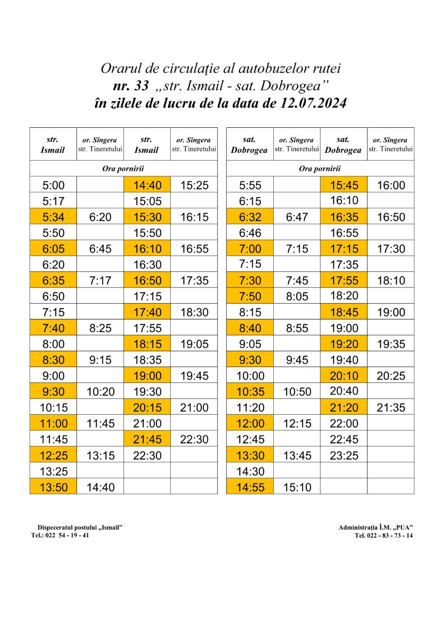 -Nr. 33 „str. Ismail – satul Dobrogea”;