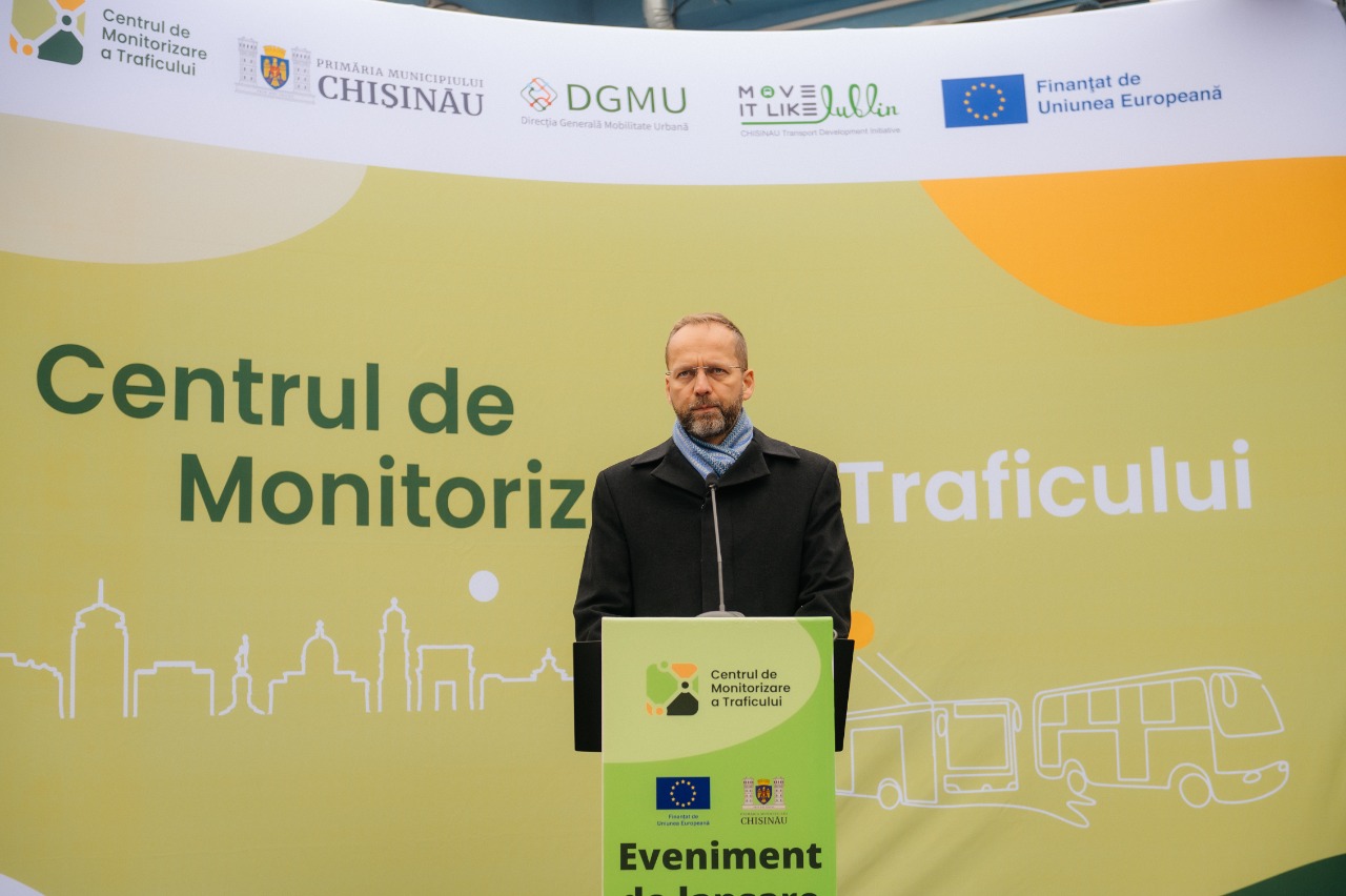 „Traficul urban este o carte de vizită a unui oraș – un indicator al organizării, eficienței și grijii pentru locuitori. În acest sens, sunt extrem de bucuros că, grație suportului Uniunii Europene, astăzi la Chișinău este inaugurat Centrul de Monitorizare a Traficului. Acest Centru cu siguranță va schimba modul în care fluxul de trafic din capitala Moldovei este gestionat și reglementat. Mobilitatea urbană este esențială pentru creșterea durabilă a orașelor și pentru o societate favorabilă incluziunii. Să găsim o sursă de inspirație în orașele europene în care planificarea urbană axată pe oameni a transformat centrele urbane în centre culturale înfloritoare”, a precizat Jānis Mažeiks, Ambasadorul Uniunii Europene în Republica Moldova.