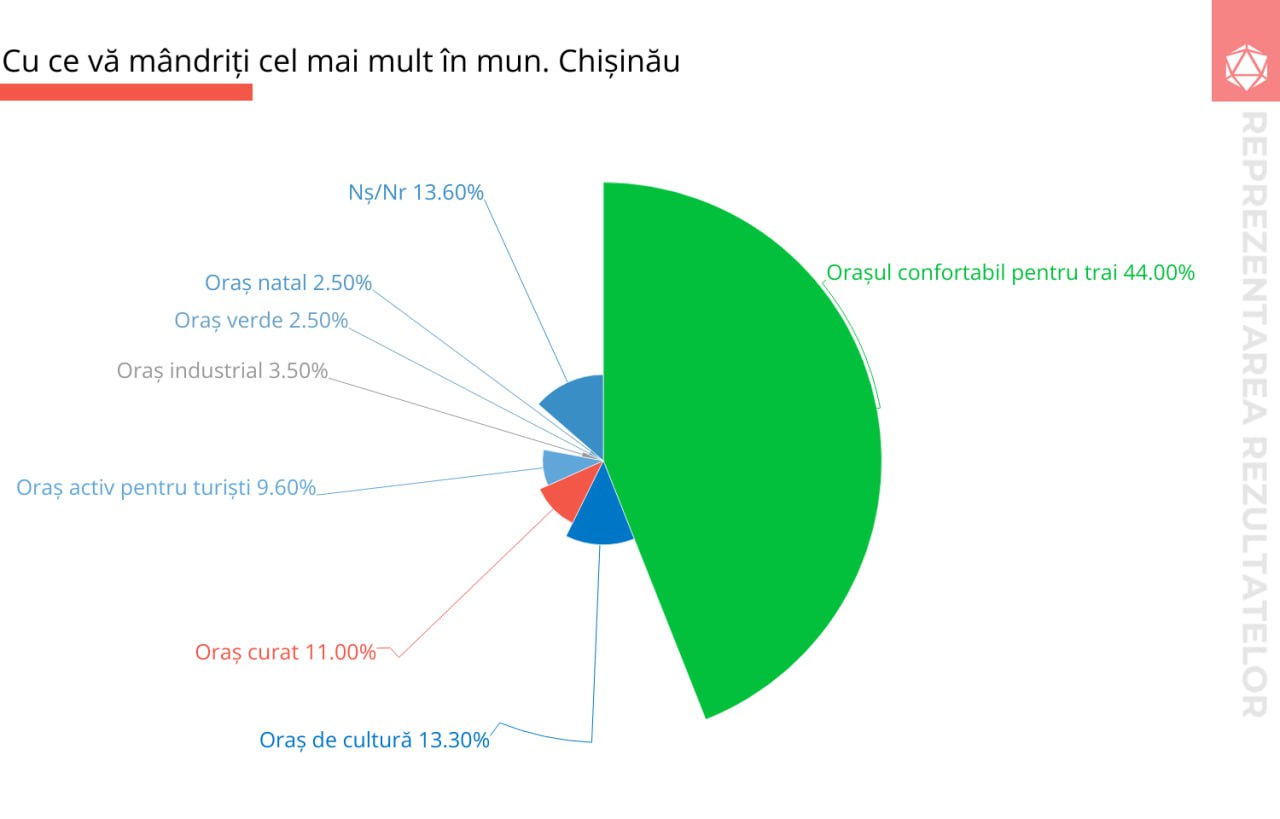 Acest rezultat reflectă aspirațiile cetățenilor din Chișinău către un oraș modern care să ofere nu doar o infrastructură urbană dezvoltată, ci și condiții socio-economice prietenoase. Locuitorii își doresc ca orașul lor să furnizeze servicii eficiente și să obțină rezultate pragmatice pentru a-și îmbunătăți calitatea vieții.