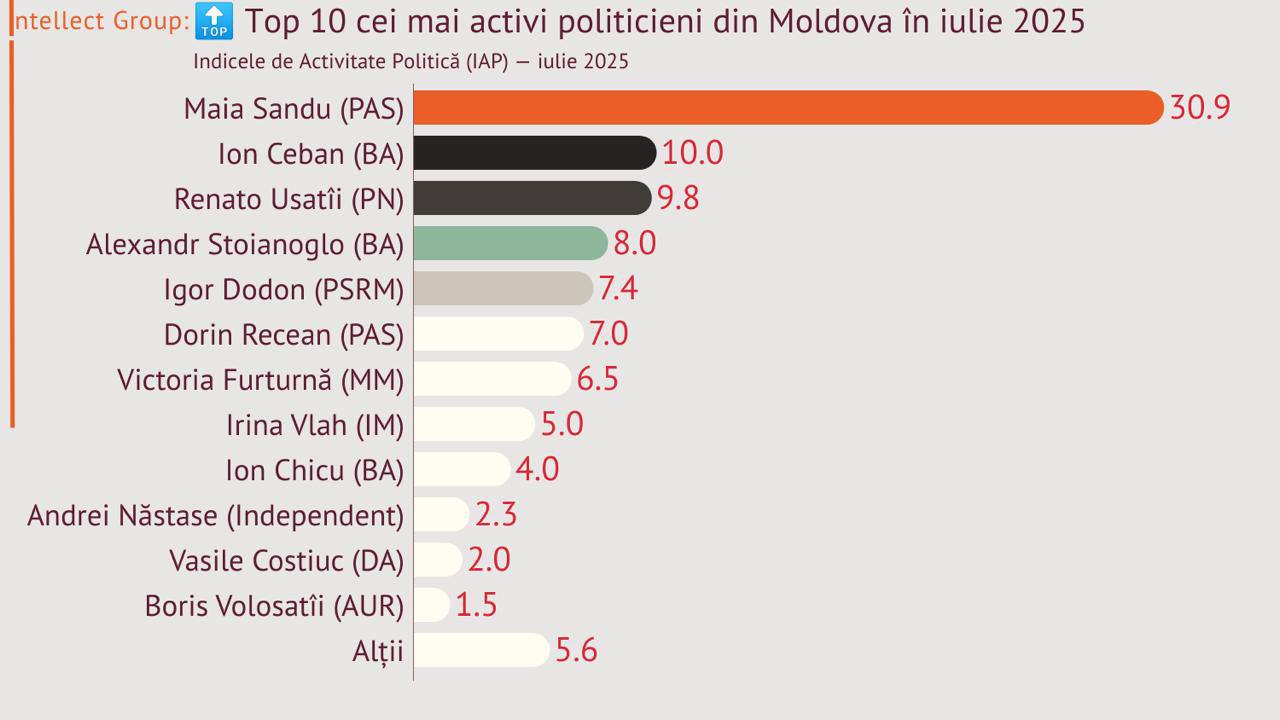 Intellect Group a prezentat Indicele de Activitate Politică (IAP) pentru luna iulie, care reflectă cu exactitate nivelul real de influență al politicienilor moldoveni în pragul campaniei parlamentare.