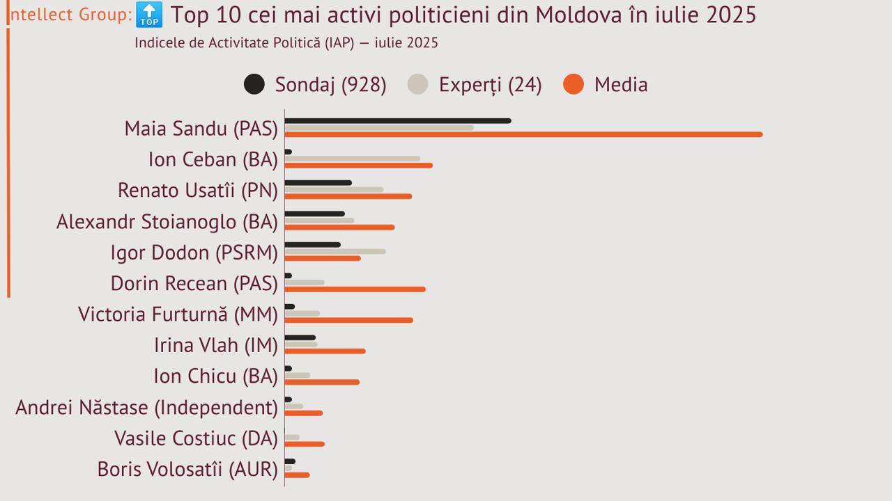 Intellect Group a prezentat Indicele de Activitate Politică (IAP) pentru luna iulie, care reflectă cu exactitate nivelul real de influență al politicienilor moldoveni în pragul campaniei parlamentare.