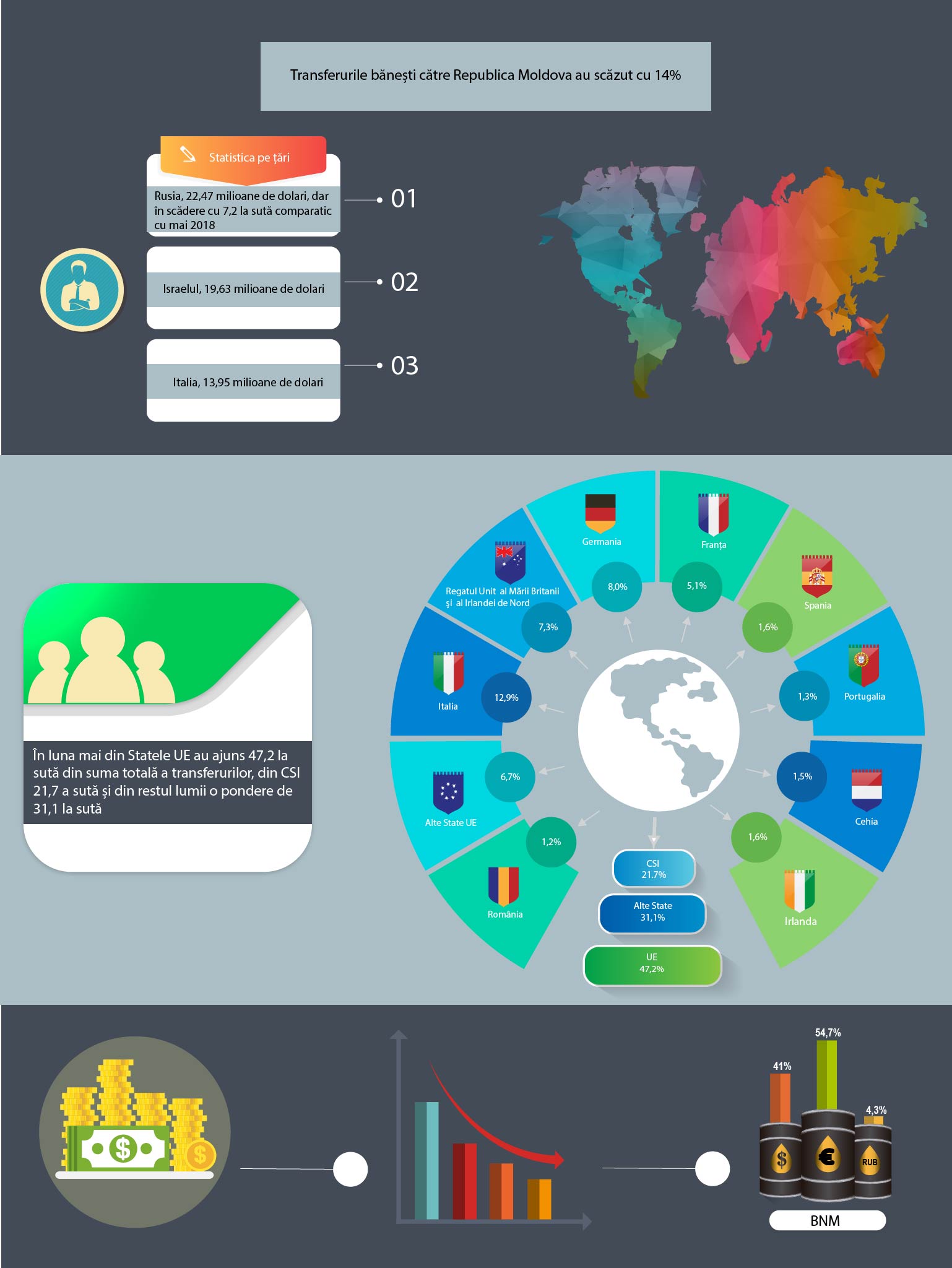 Moldovenii de peste hotare trimit acasă mai puţini bani. În luna mai, în țară, au intrat 108,35 milioane de dolari, în scădere cu 14,2 la sută comparativ cu aceeaşi perioadă din 2018, arată datele Băncii Naţionale, transmite Breaking News.