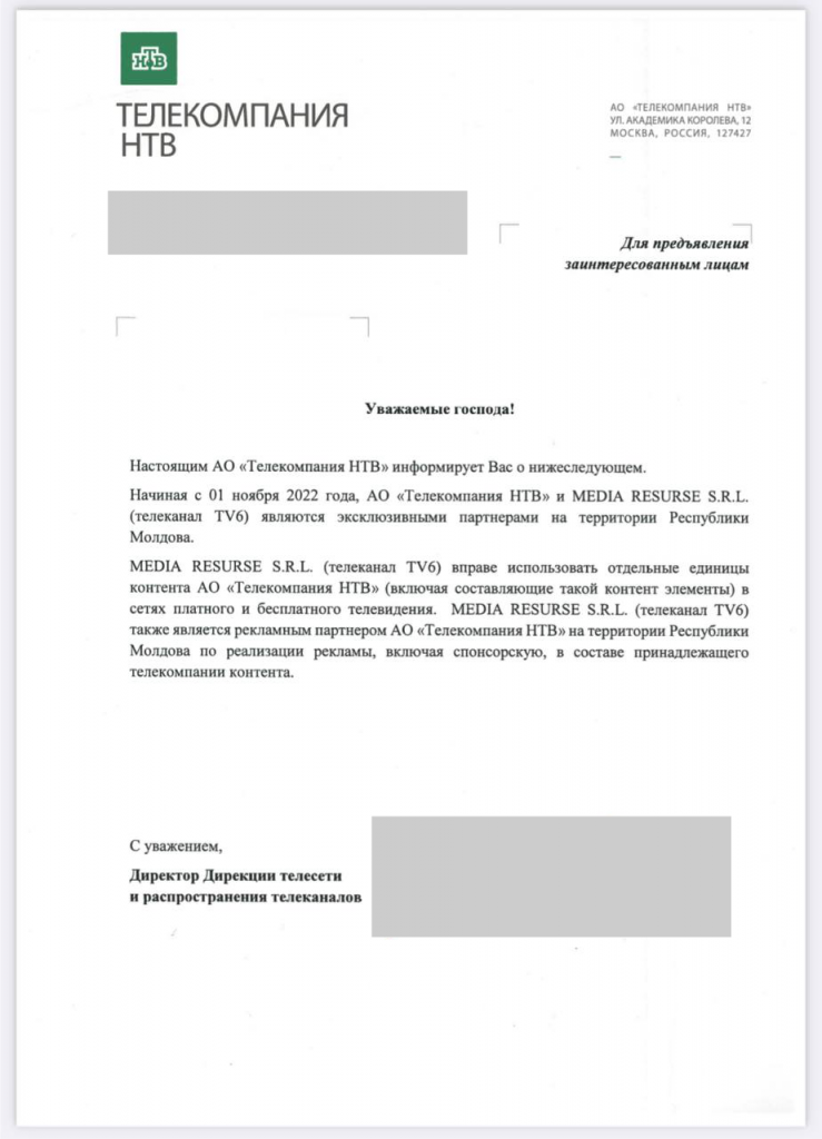 Mai mult, TV6 deține dreptul exclusiv de retransmitere în Moldova a produselor NTV.