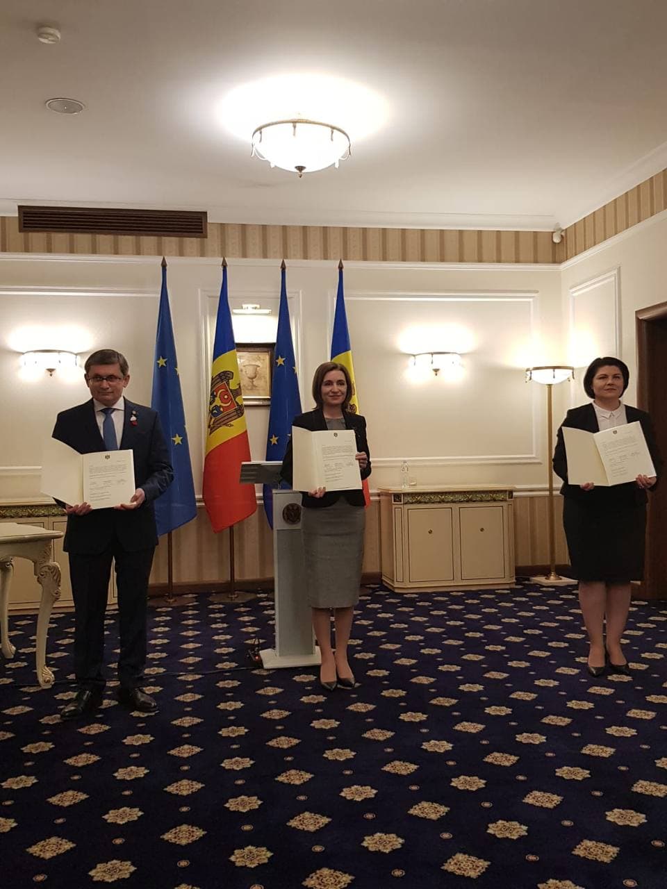 Șefa statului, însoțită de prim-ministra Natalia Gavrilița și președintele Parlamentului Igor Grosu, a semnat documentul în acest sens.