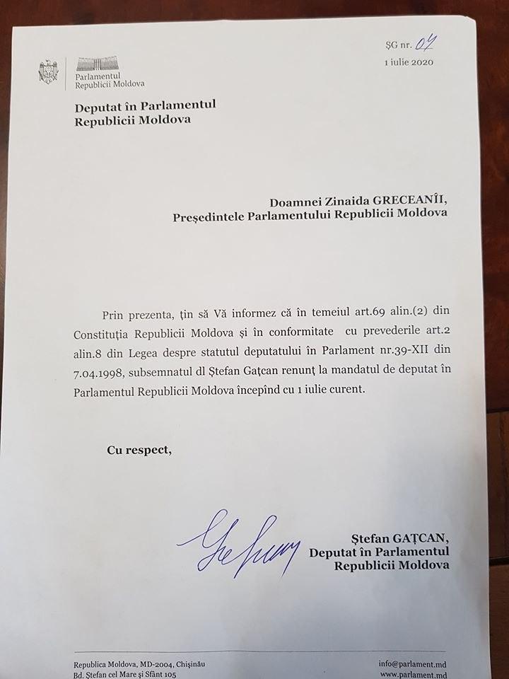 Ștefan Gațcan a renunțat la mandatul de deputat. O cerere în acest sens a fost înregistrată la Parlament. Documentul a fost publicat pe Facebook de către președintele fracțiunii PSRM, Corneliu Furculiță. Totodată, socialiștii au venit cu un comunicat de presă: