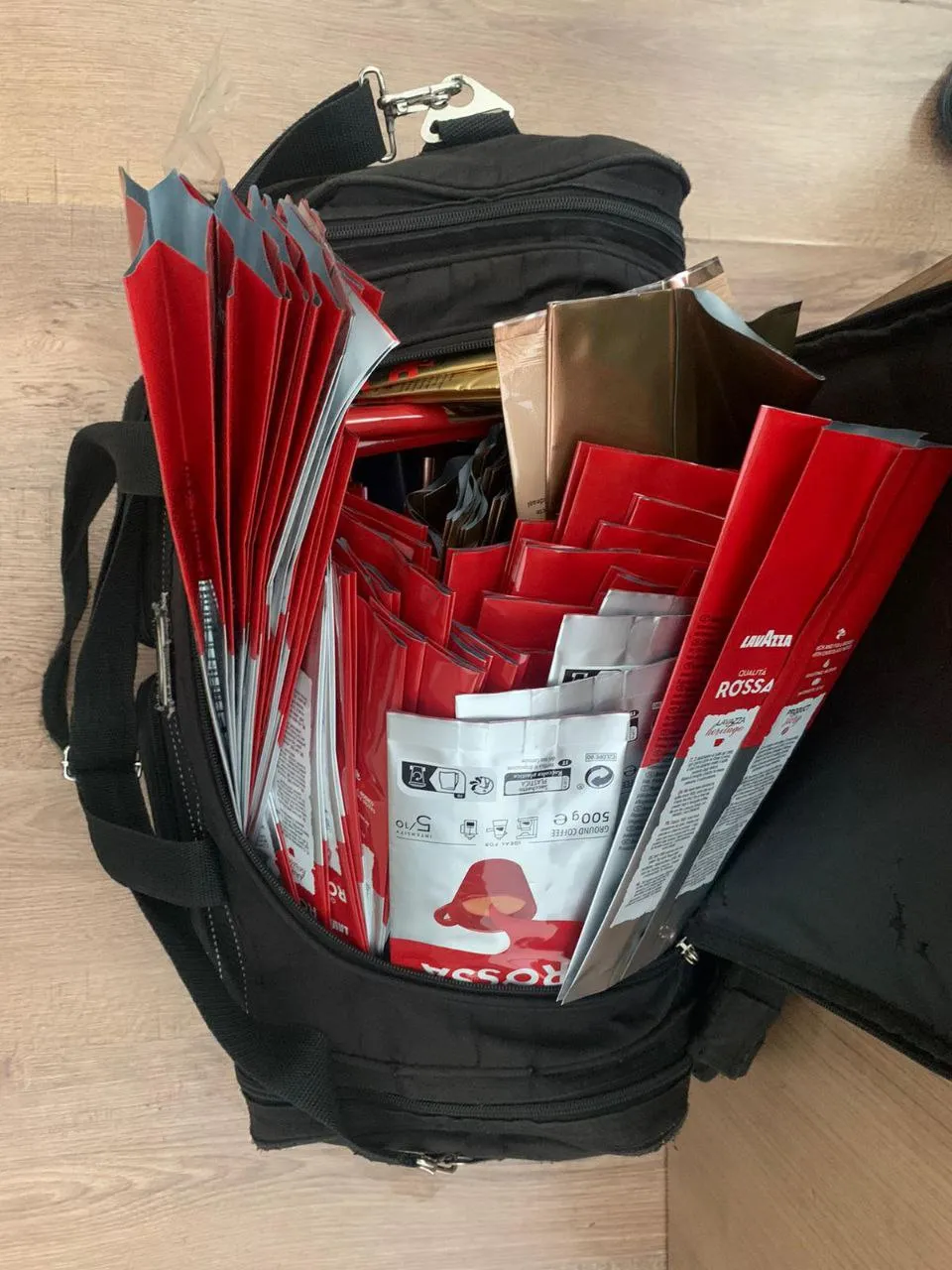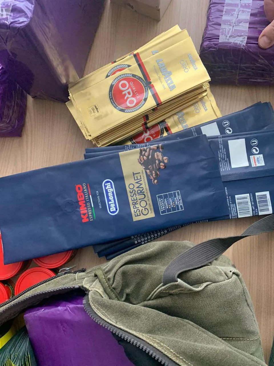 Drept urmare, asupra unui pasager au fost depistate 2.960 de ambalaje de polietilenă pentru cafea, cu diferite inscripții, presupuse a fi contrafăcute și nedeclarate organului vamal.