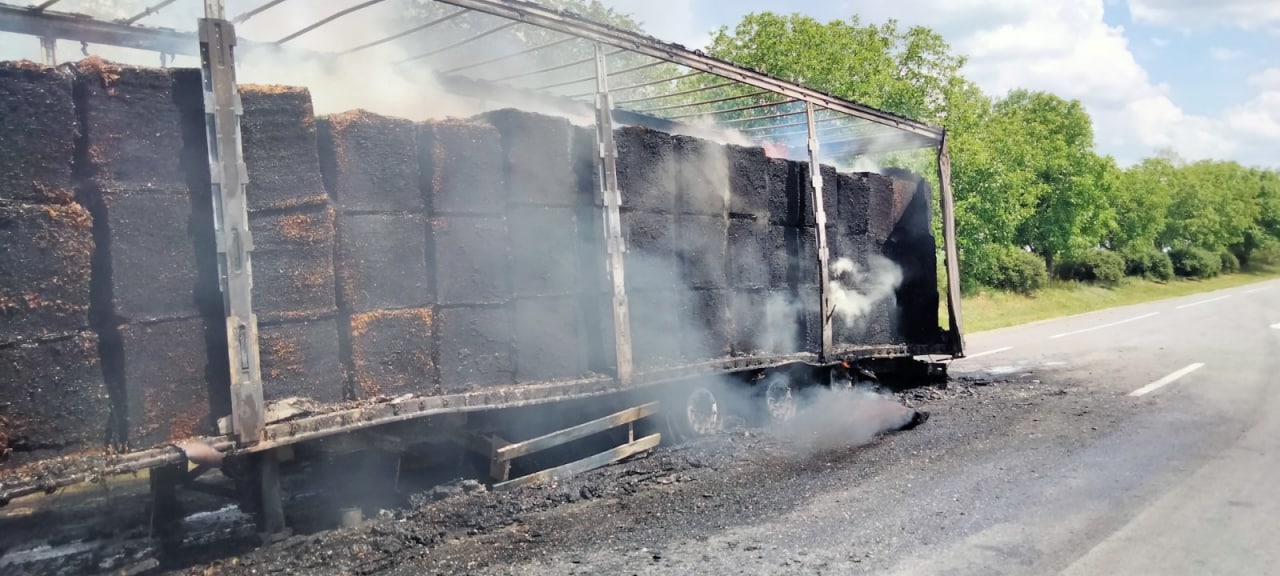 Pompierii Insepctoratului General pentru Situații de Urgență (IGSU) au intervenit luni, 4 iulie, pentru a stinge un autocamion încărcat cu 21.5 tone de tutun uscat.