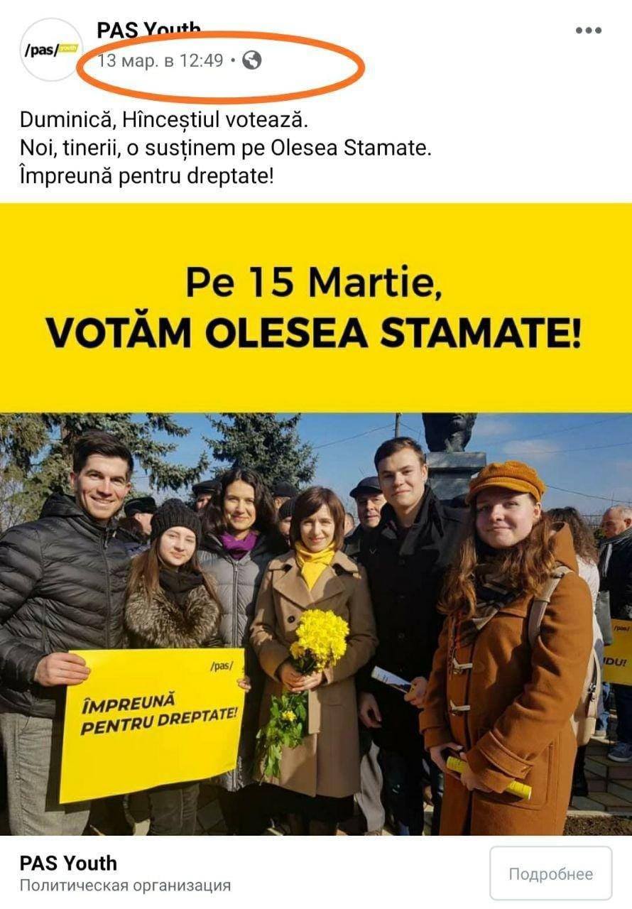 Și asta în condițiile în care tot cei de la PAS în ziua de vineri chemau lumea la vot și anume să o susțină pe Olesea Stamate.