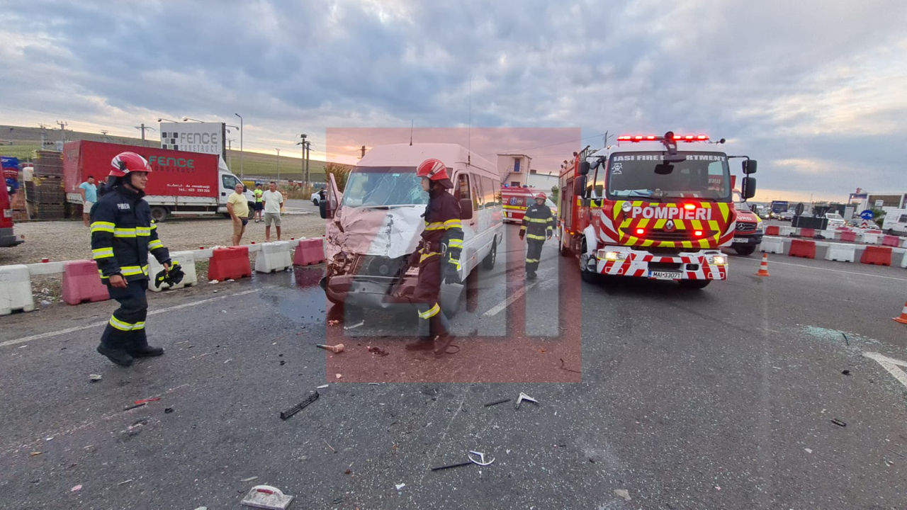 ISU transmite că nu sunt persoane încarcerate, dar intervenţia este în dinamică. Centrul Infotrafic din Inspectoratul General al Poliţiei Române informează că, potrivit primelor informaţii, zece persoane au suferit răni uşoare (4 din autoutilitară, 6 din microbuz).