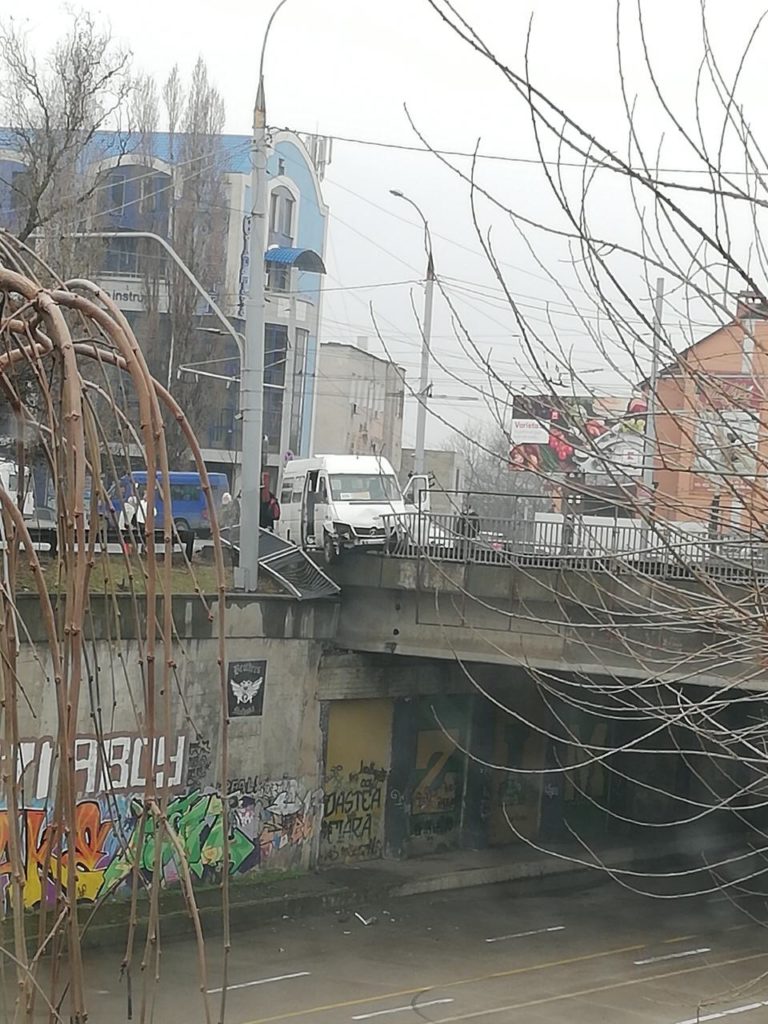 Un microbuz cu pasageri de pe ruta 108 a fost la un pas de a se prăbuși de pe podul din cartierul Telecentru al capitalei, după ce a fost implicat într-un accident.