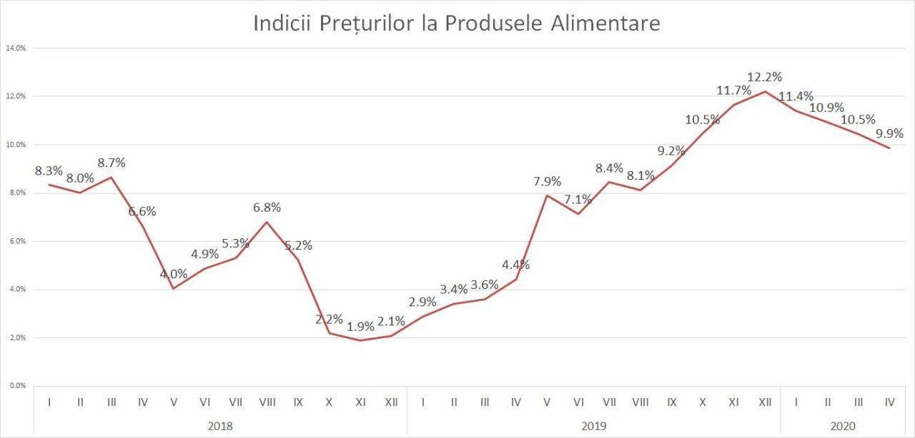 ”Aceasta se datorează perioadei începutului de an. Considerăm că prețurile la produsele alimentare, odată cu apariția roadei noi vor continua să scadă”, susține analistul.