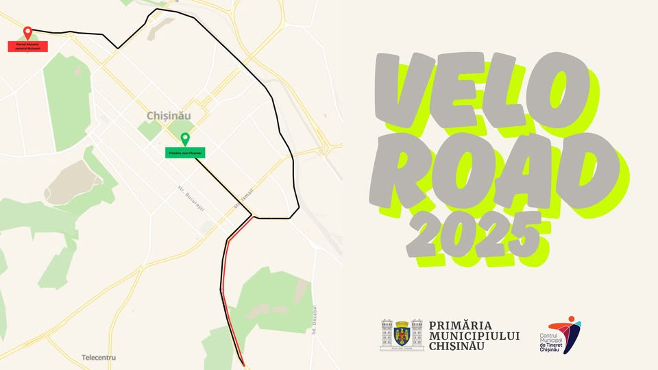 Vino duminică, 13 iulie, la ora 09:00, în fața Primăriei Chișinău, pentru a participa la un eveniment de mobilitate urbană și energie pozitivă – VELO ROAD, plimbarea ciclistă care îți oferă ocazia să redescoperi orașul într-un mod activ, ecologic și prietenos!