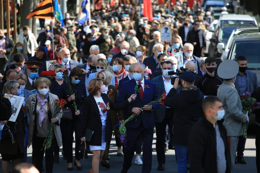 În fruntea coloanei, care a mers din Piața Marii Adunări Naționale până la Complexul Memorial „Eternitate”, se aflau liderii PSRM, Igor Dodon și Zinaida Greceanîi. La eveniment a participat și ambasadorul Rusiei la Chișinău, Oleg Vasnețov.