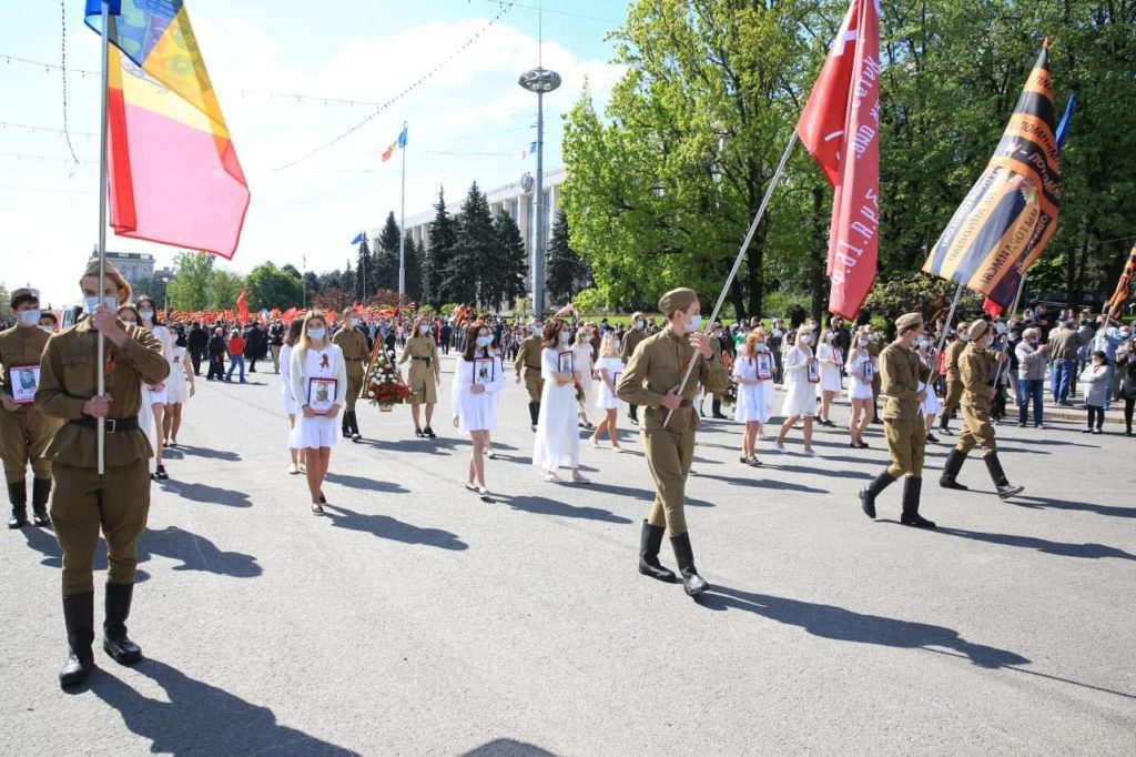Peste zece mii de cetățeni au participat, astăzi, la „Marșul Victoriei” și „Regimentul Nemuritor”, organizat cu ocazia zilei de 9 mai. Evenimentul a început cu o paradară a mașinilor retro. Tinerii au venit cu pozele buneilor săi, căzuți pe câmpul de luptă, pentru a le păstra memoria. Oamenii au scandat „Victorie! Moldova!”