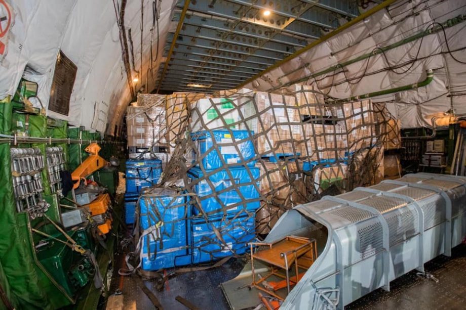 Încărcătura include peste 80 mii de teste de depistare a COVID-19, peste 80 mii de kituri de extracție, peste 280 mii de respiratoare KN 95, peste 600 mii de perechi de mănuși medicale, 50 mii tuburi de prelevare, mii de ecrane și ochelari de protecție, combinezoane, termometre cu infraroșu și alte echipamente de protecție.