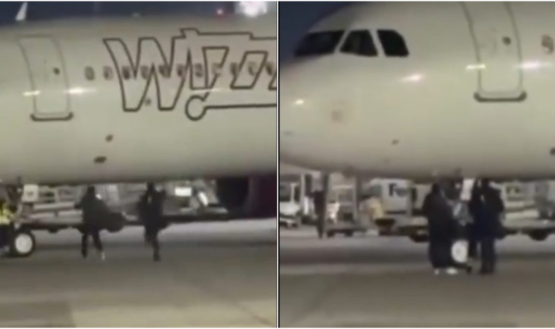 VIDEO// Doi români filmați alergând pe pistă după un avion Wizz Air, după ce au spart un buton de urgență