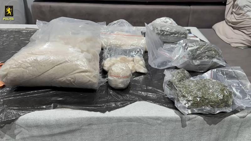 În urma investigațiilor, polițiștii au identificat adresa temporară a suspectului. La percheziția autorizată au fost depistate și ridicate aproximativ 9,5 kg de mefedronă și circa 2 kg de marijuana.