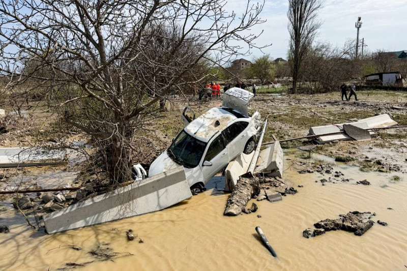 Heavy rains caused a dam to burst in Derbent, submerging villages and highways, overturning cars and damaging infrastructure pic.twitter.com/RqghIKWM5d
