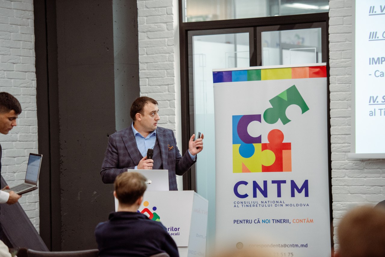 Despre importanța implicării tinerilor în procesul de modernizare a țării și apropierea de valorile europene a vorbit și președintele Consiliului Național al Tineretului din Moldova, Cristian Vizir.