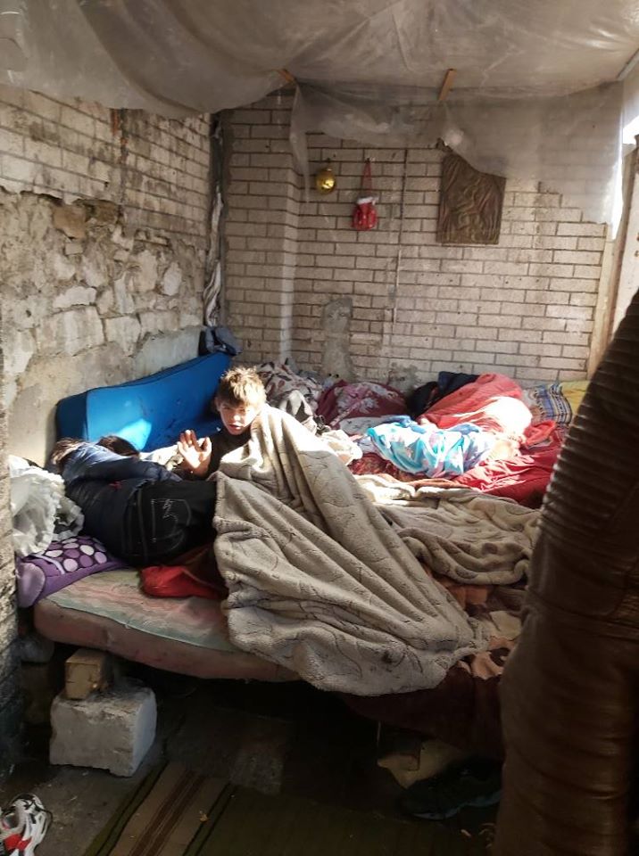 Copiii își petrec zilele și nopțile în mizerie și frig într-o locuință improvizată.